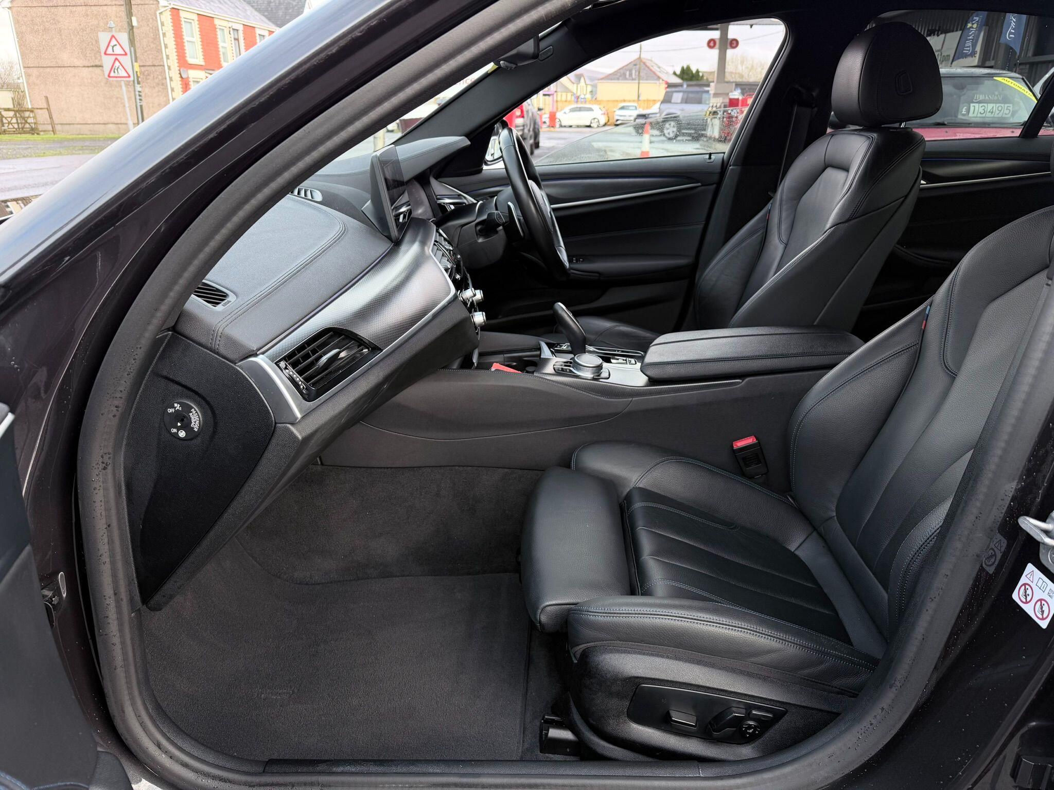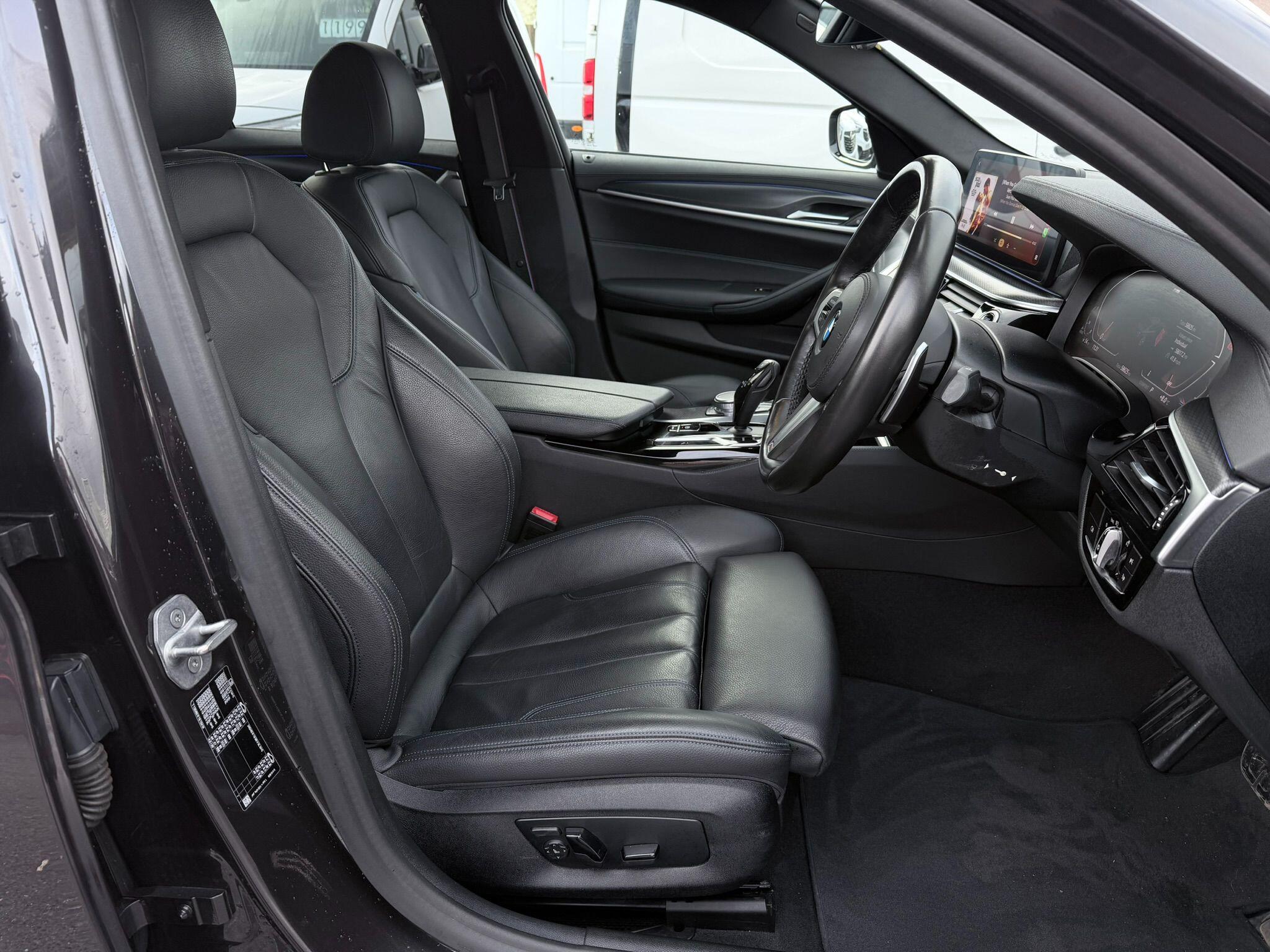 This 2020 BMW 5 Series 520d M Sport is a superb example, having been owned by just one careful keeper from new. It boasts a powerful yet efficient 2.0 litre diesel hybrid engine, meeting Euro 6 emissions standards. The M Sport trim level is enhanced by the M Sport Pro Package, and the vehicle is fitted with striking 20 inch M Light Y-spoke style 846 Bicolour Jet Black alloy wheels with mixed tyres and run flat capability. For enhanced visibility and safety, it features LED headlights, and you can enjoy a comfortable cabin environment thanks to the dual zone automatic air conditioning.