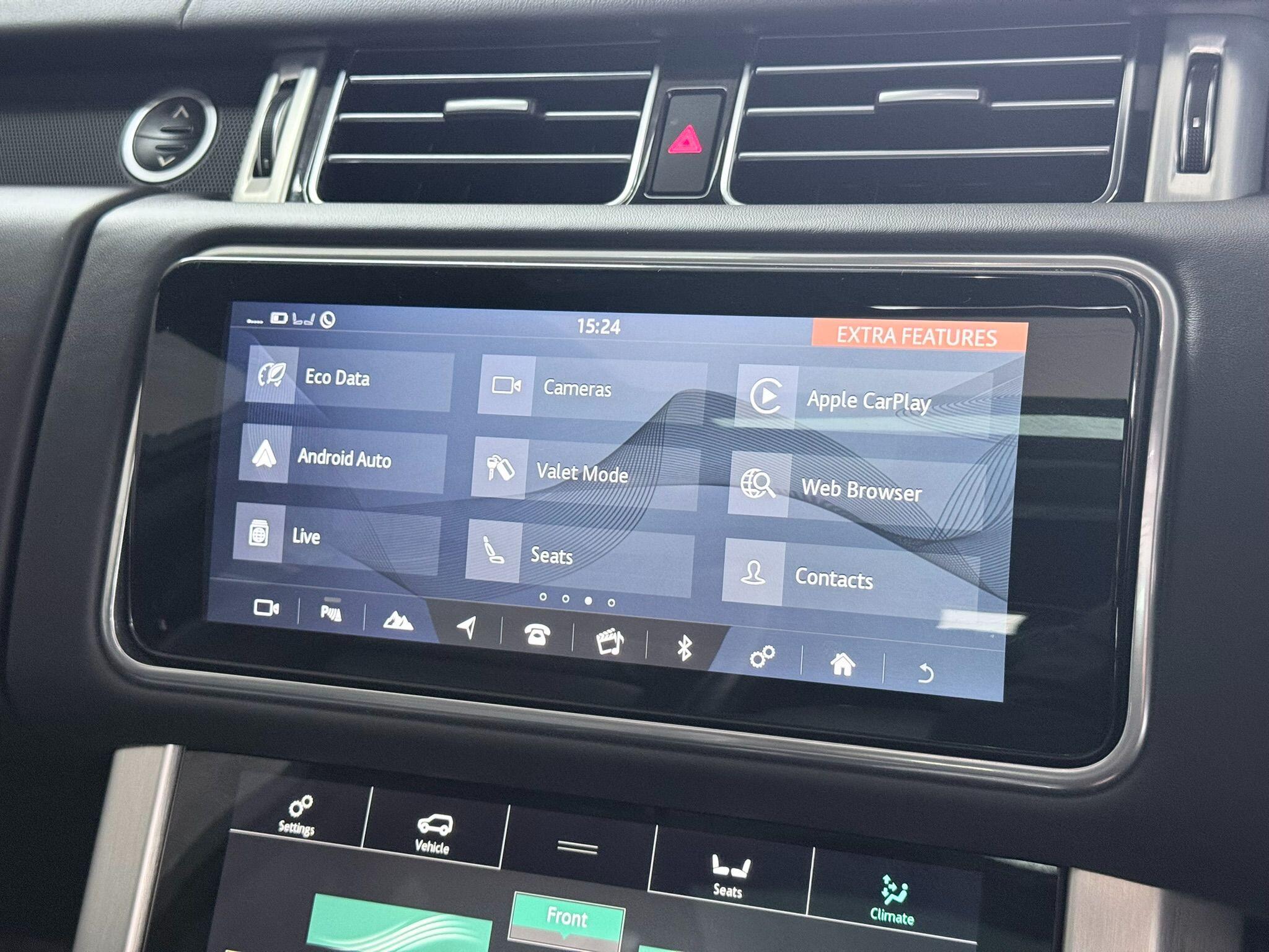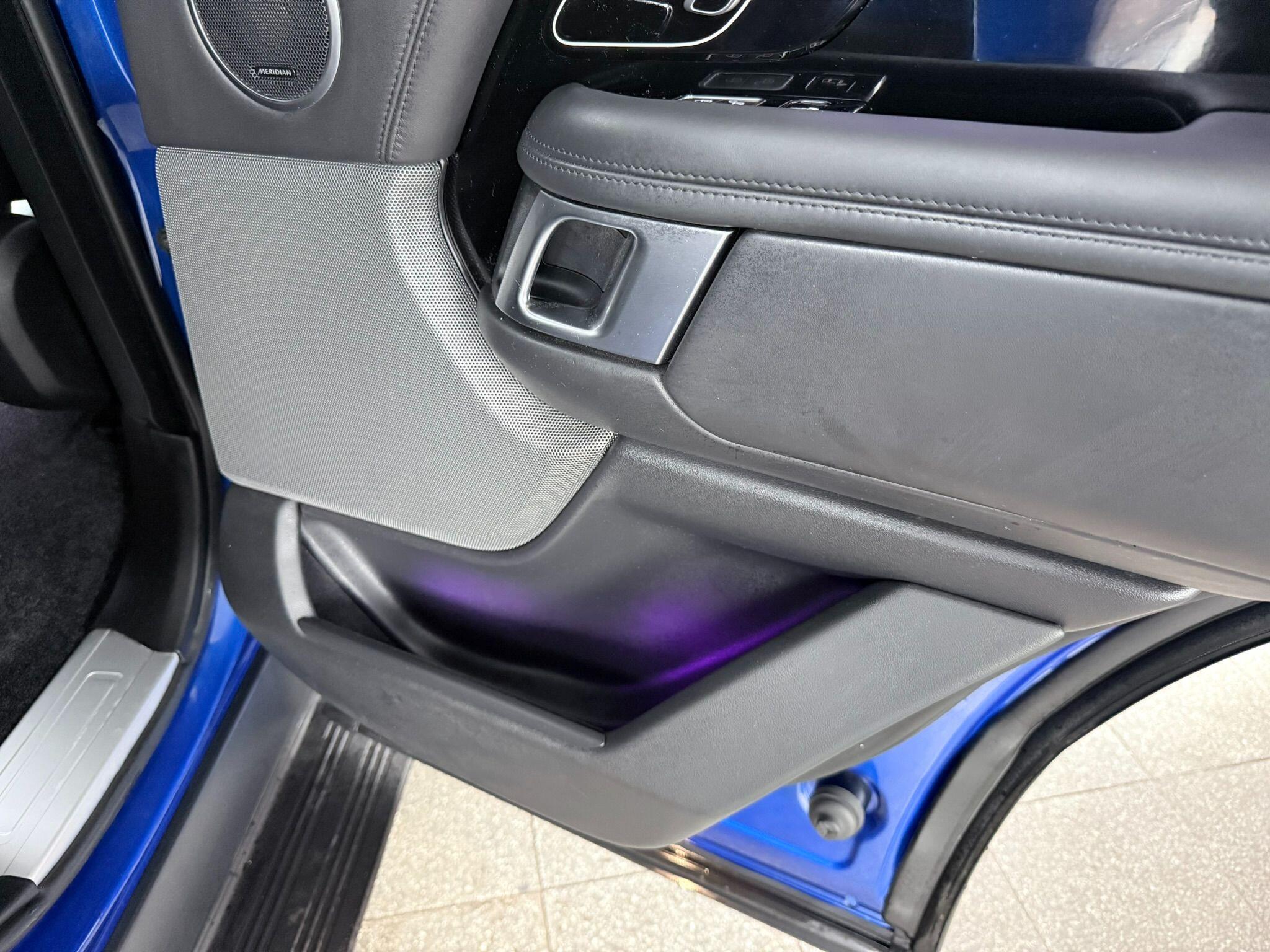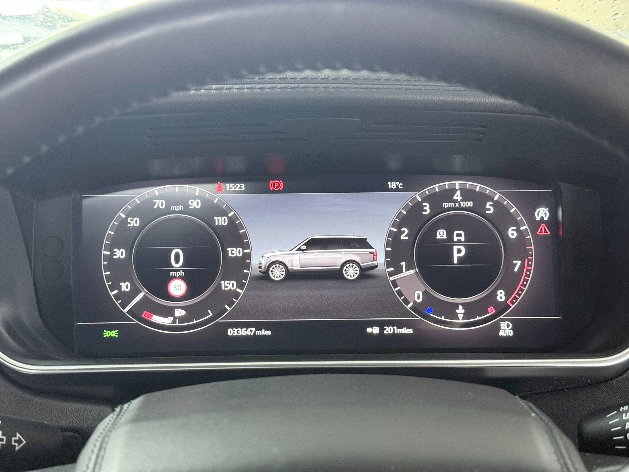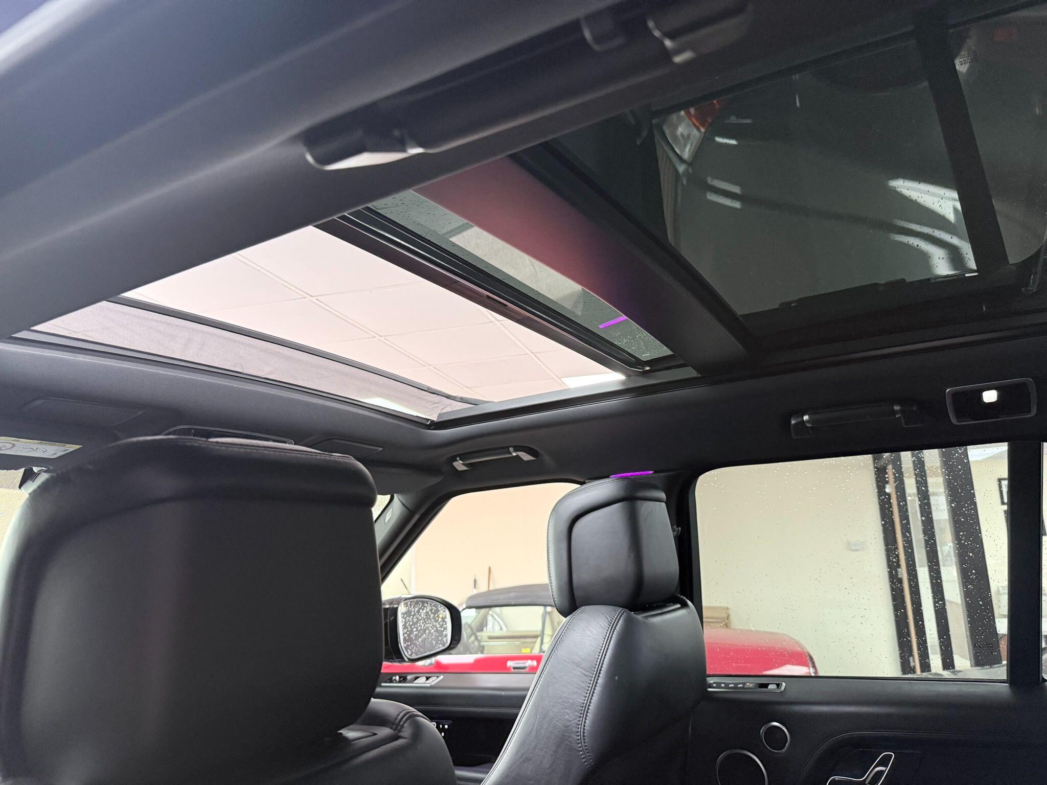This 2020 Land Rover Range Rover P400 Vogue SE presents an exceptional ownership proposition with its remarkably low mileage of just 33,647 miles. As a Euro 6 compliant vehicle, it features a powerful 3.0 litre petrol engine paired with a sophisticated Four Wheel Drive system, ensuring capability in all conditions. The Vogue SE trim level signifies a high specification, further enhanced by desirable features such as the immersive Meridian Signature Sound System, a striking Narvik Black Contrast Painted Roof, and a comprehensive Black Exterior Pack. Subtle yet distinctive touches include the P400 badging and Grey Anodised Brake Calipers with Land Rover script, all contributing to its refined presence.