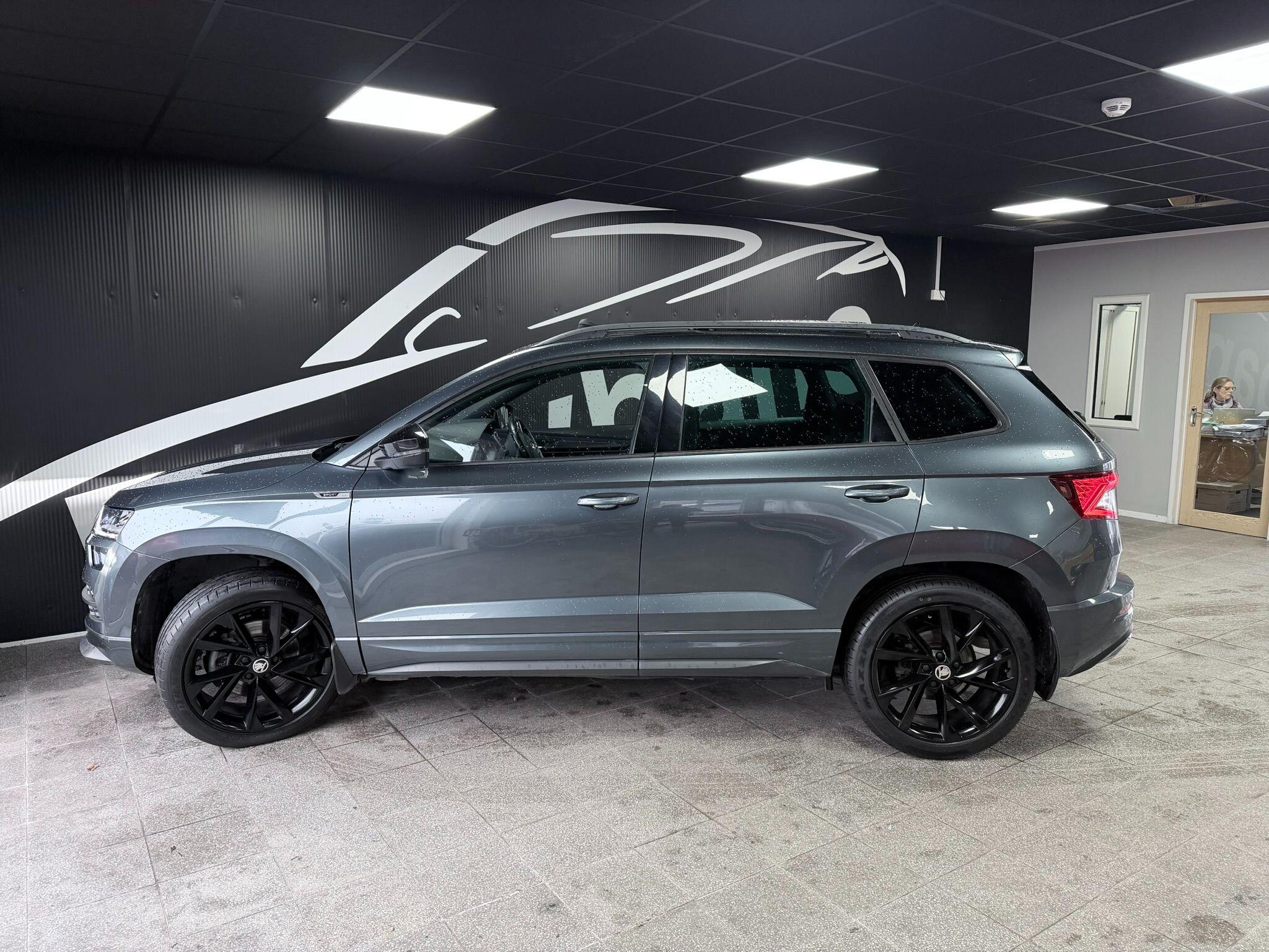 This 2019 Skoda Karoq TSI SportLine presents an exceptional opportunity with its remarkably low mileage of just 29826 miles. This Euro 6 compliant, four wheel drive model boasts a 1.5 litre petrol engine and comes in the SportLine trim. Notable features include Drive Mode Selection with an Off Road setting, which can be personalised, and an RKA Tyre Pressure Display for your peace of mind. Inside, you will find a convenient Glasses Storage Compartment and three 3 point rear belts, ensuring comfort and safety for all passengers.