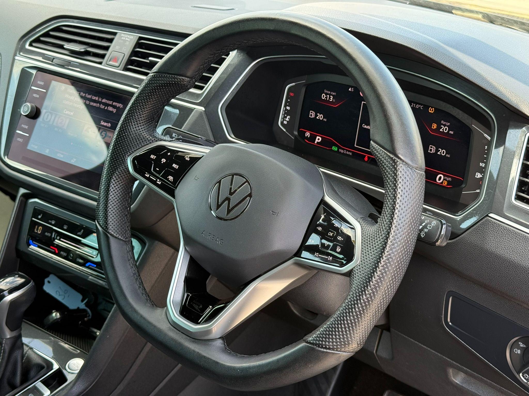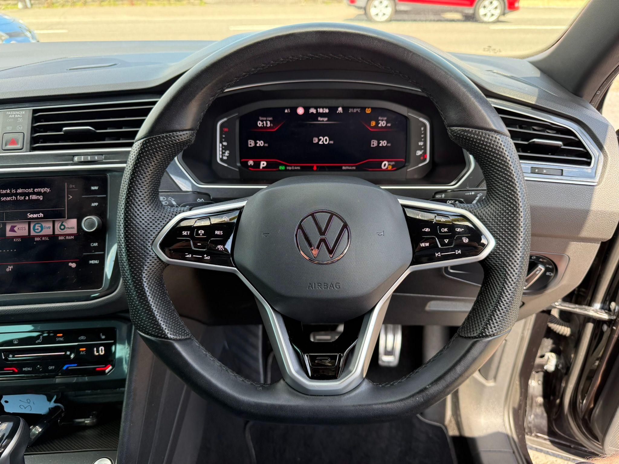 With only one previous owner, this 2021 Volkswagen Tiguan 1.5L petrol TSI R-Line, in R-Line trim, offers a compelling blend of style and practicality. The vehicle meets Euro 6 emission standards and boasts a suite of features designed to enhance comfort and convenience. Enjoy seamless connectivity with the Discover Media Navigation infotainment system, complete with streaming and internet capabilities, including Bluetooth. The Winter Pack ensures cosy journeys with heated front seats and a heated steering wheel, while the dusk sensor provides automatic activation of driving lights. The Assistance Pack Plus adds an extra layer of safety, incorporating blind spot assistance, front and rear parking sensors.