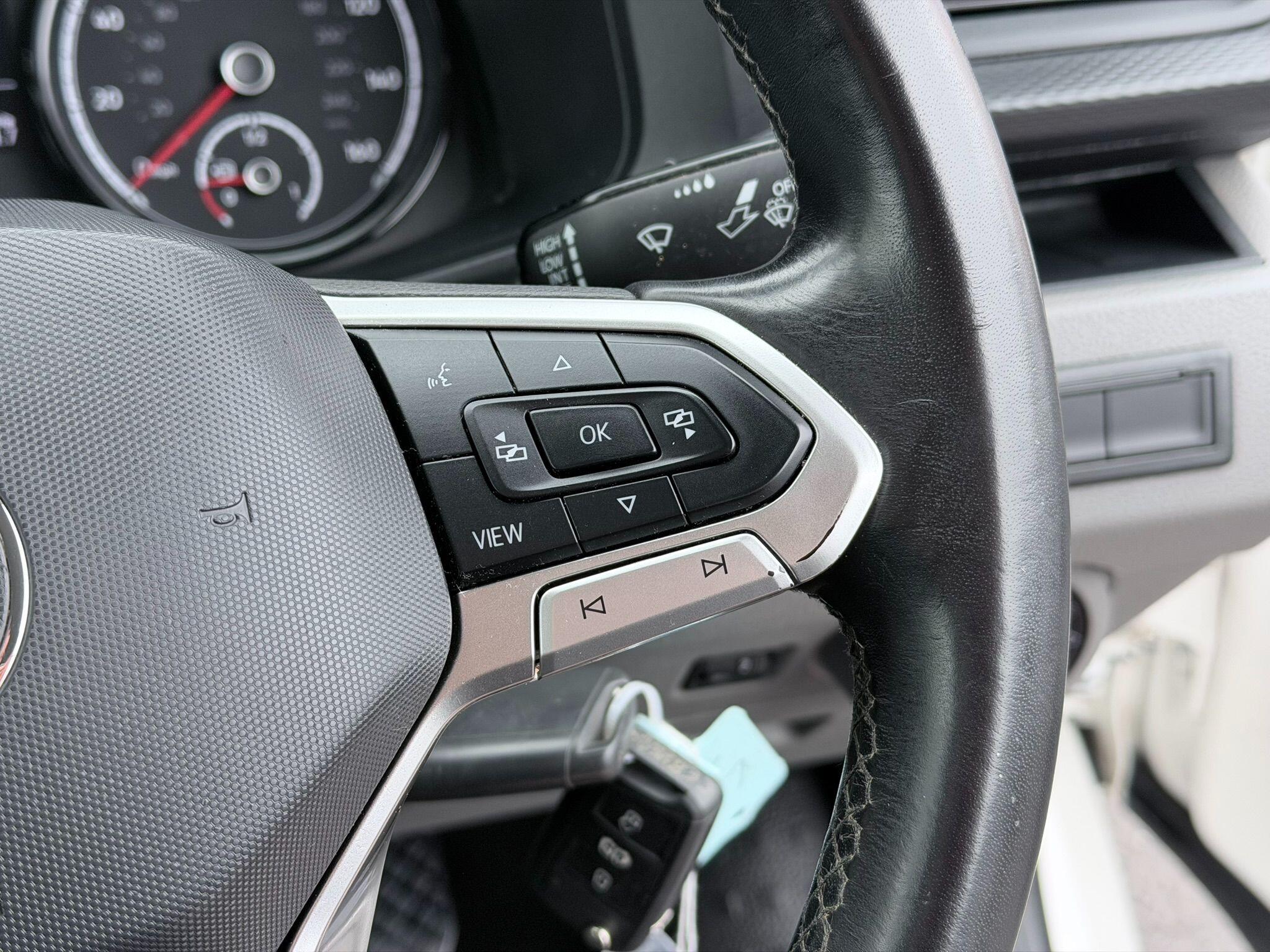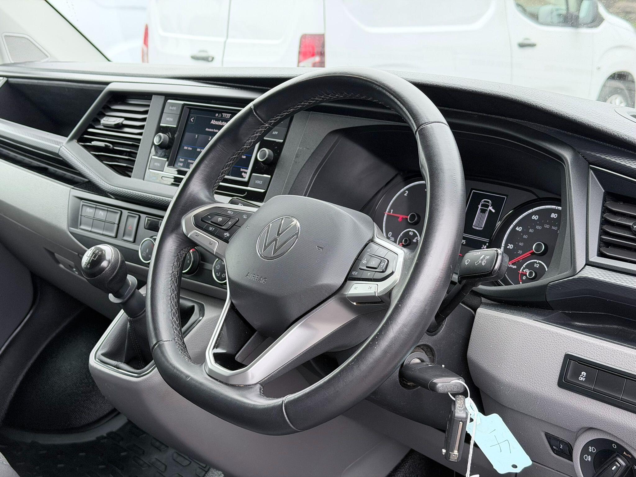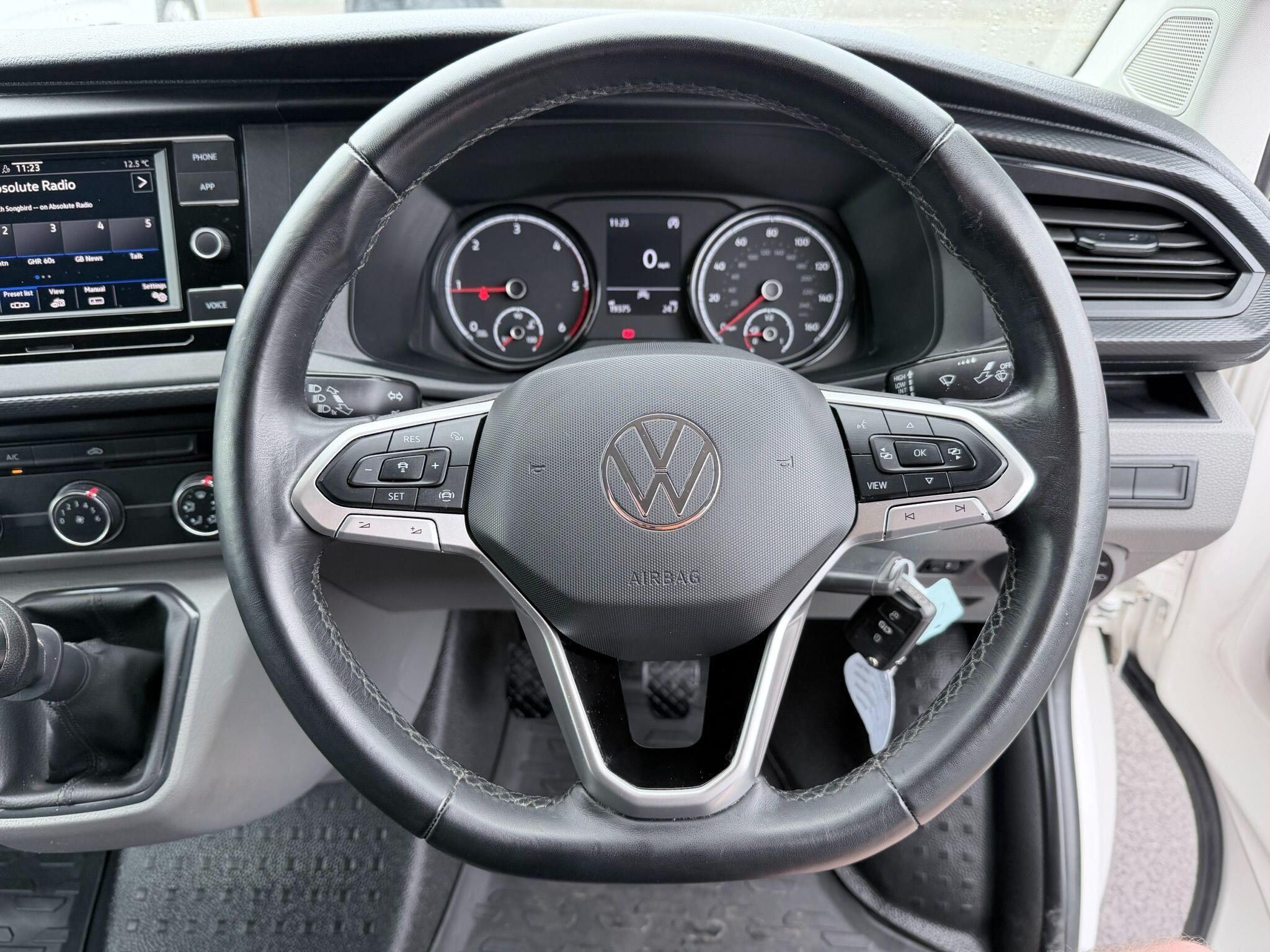 This 2024 Volkswagen Transporter offers exceptional value with only one owner and a remarkably low mileage of 19,375 miles. This TDI T28 Highline FWD SWB Euro 6 (s/s) 5dr model is equipped with a 2.0 litre diesel engine and benefits from a Euro 6 emission class. Inside, you'll find a Composition Colour DAB Plus Radio System featuring a 6.5 inch touch screen and Bluetooth connectivity, alongside electronically controlled air conditioning for your comfort. The Highline trim also includes automatic headlight activation with daytime running lights and a manual coming home function.