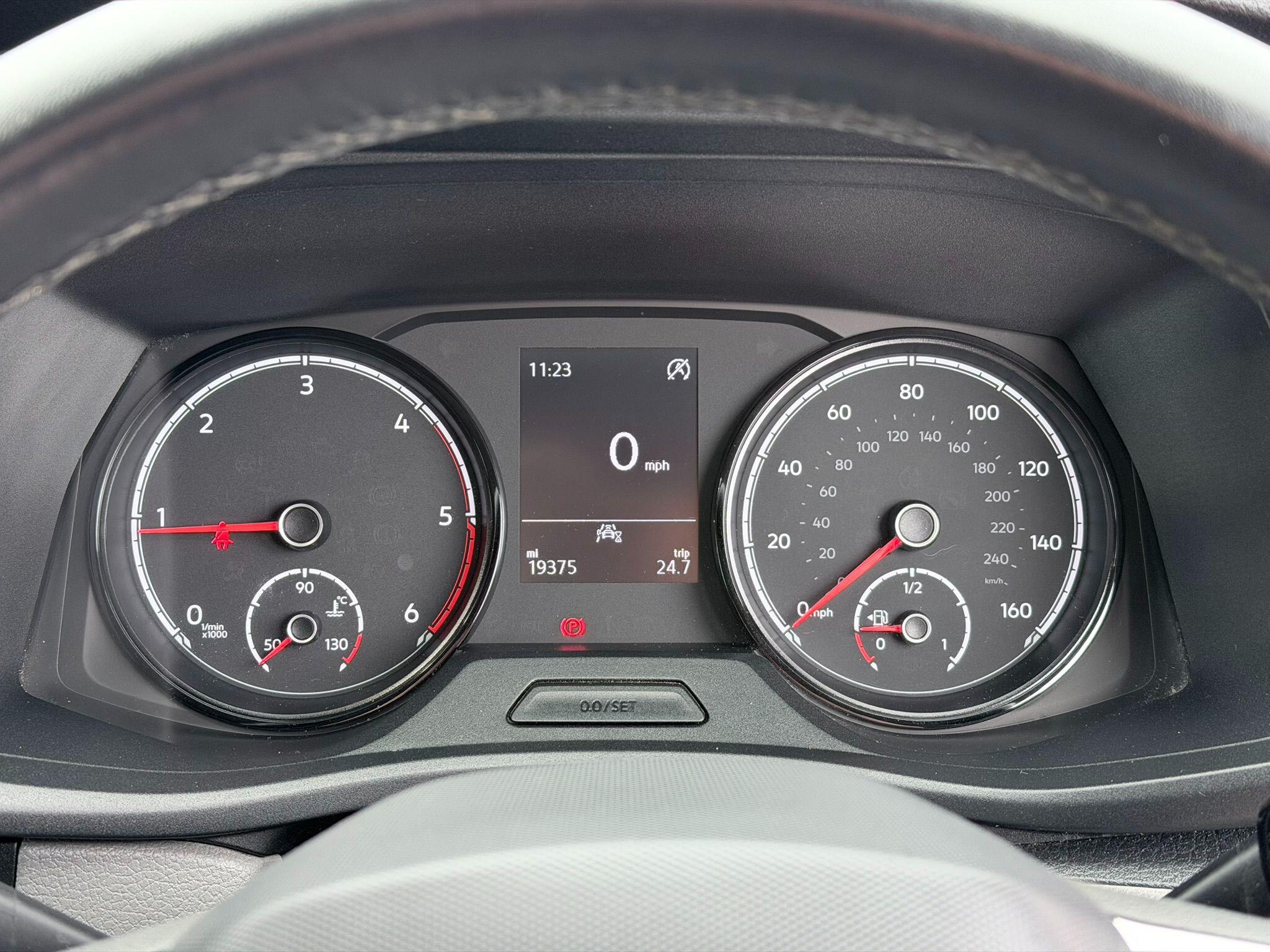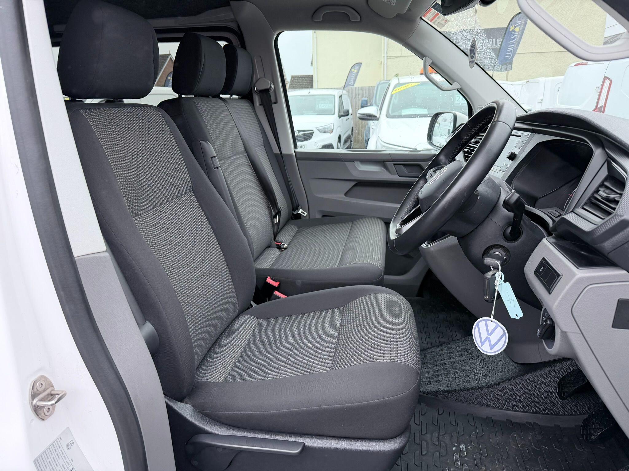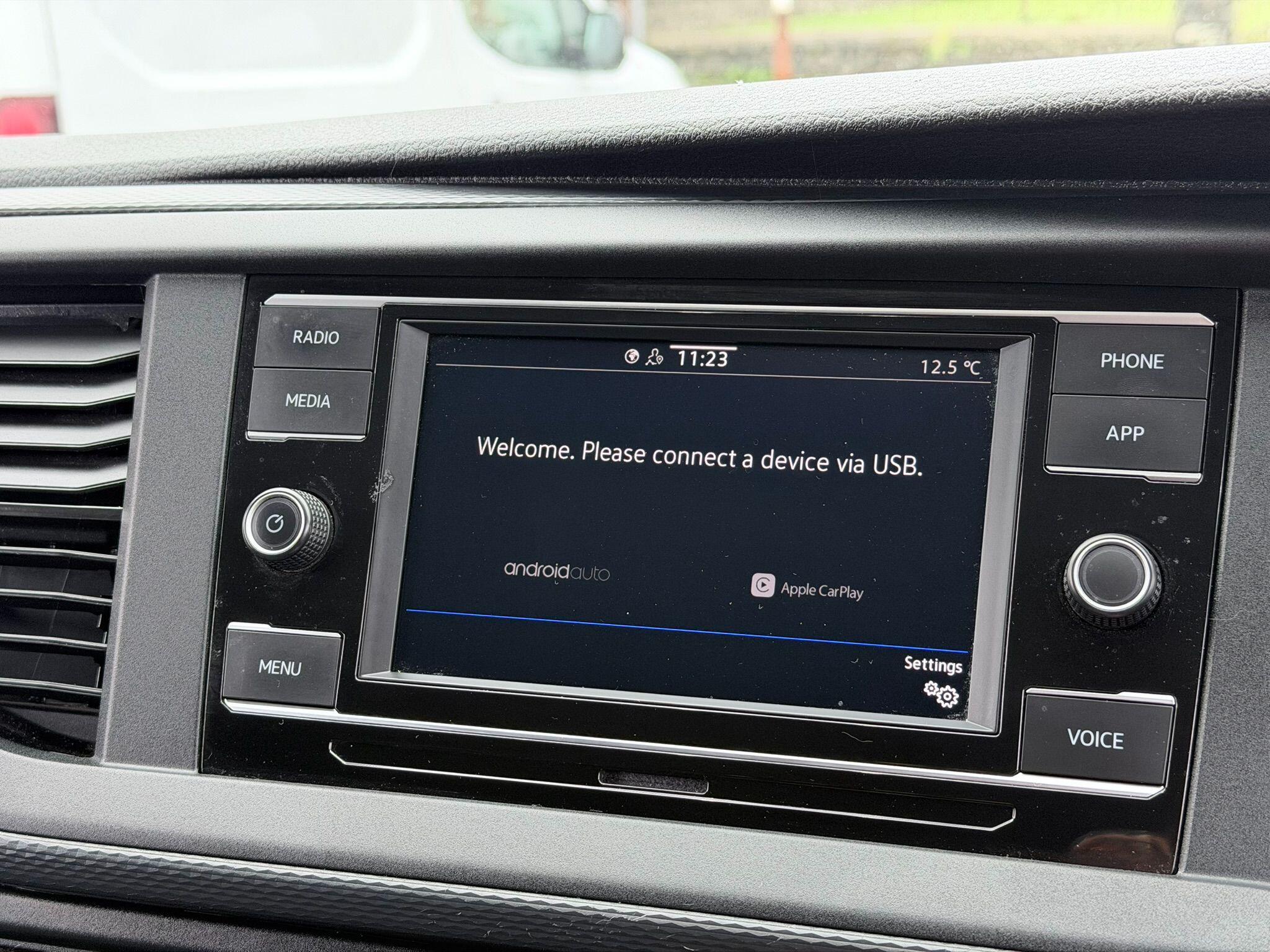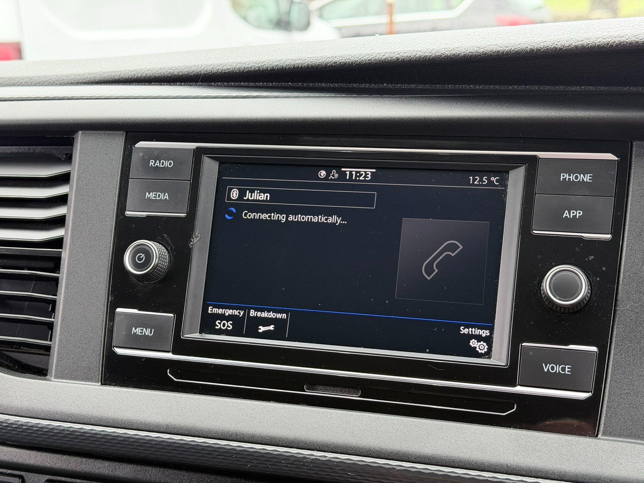 This 2024 Volkswagen Transporter offers exceptional value with only one owner and a remarkably low mileage of 19,375 miles. This TDI T28 Highline FWD SWB Euro 6 (s/s) 5dr model is equipped with a 2.0 litre diesel engine and benefits from a Euro 6 emission class. Inside, you'll find a Composition Colour DAB Plus Radio System featuring a 6.5 inch touch screen and Bluetooth connectivity, alongside electronically controlled air conditioning for your comfort. The Highline trim also includes automatic headlight activation with daytime running lights and a manual coming home function.